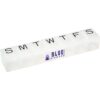 Pill storage box features seven compartments. Each day of the week is conveniently labeled on the hinged, snap-up lid.–Undecorated Stock Available in 5 Working Days–.