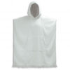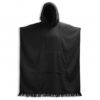 Convenient hooded towel made of 320GSM, 100% cotton. With a fringe trim and kangaroo pocket, this towel is both absorbent and stylish. It has side snaps, terry on the inside, and a flat weave on the outside.