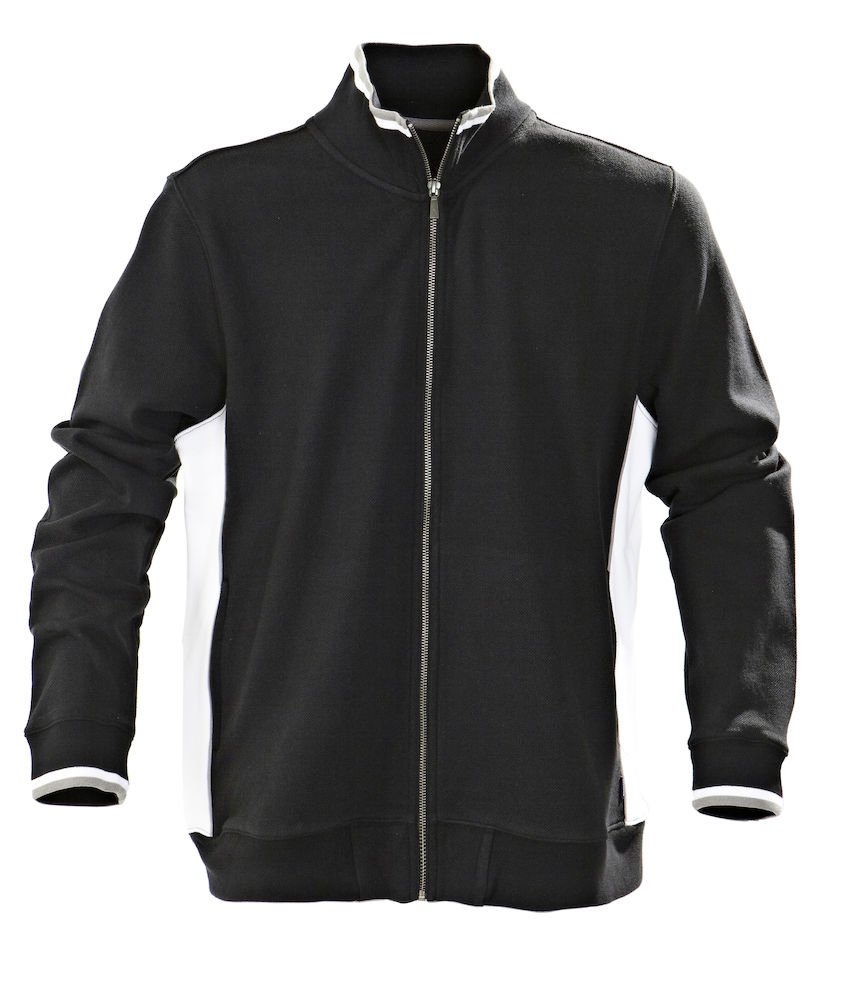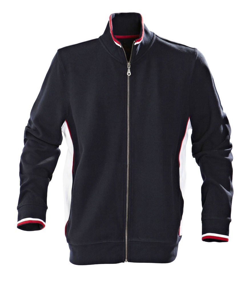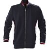 Unisex heavy knitted jacket in pique with contrasts at collar and sleeves.