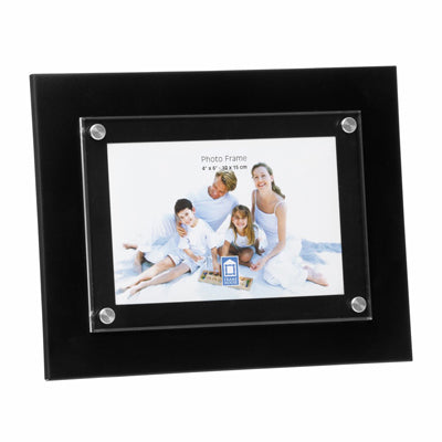 Aluminium black finish frame 10 x 15cm photo, suitable for landscape or portrait configuration. Acrylic front with silver studs. Supplied in white box.