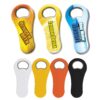Sturdy ABS plastic bottle opener with nickel plated steel opener.