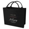 The Page recycled tote bag is the perfect fit to hold daily items and to bring on a variety of trips, from library to grocery store. With short but sturdy handles, this bag is comfortable to carry around for a long time.
