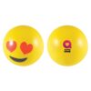 Round stress ball with choice of Heart, Smile or Cool emoji faces.