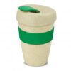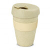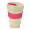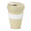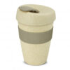 Unique 340ml double wall reusable coffee cup which will keep drinks hot for longer and remain comfortable to hold. It is manufactured from a 50/50 blend of natural rice husk fibre and BPA-free polypropylene. It has a decorative silicone band and a secure screw on lid with a splashproof flip closure. The silicone band and flip closure can be mixed and matched in any colour combination from the standard colours at no extra cost. Up to five different colour combinations are included in the price and more are available for an additional charge. An optional natural gift box is available on request. This product is not dishwasher safe and handwashing is recommended. Express Cup – Double Wall Natural is protected under New Zealand Design Registration No. 419451 and Australian Design Registration No. 361937.