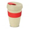 Unique 480ml reusable coffee cup which is manufactured from a 50/50 blend of natural rice husk fibre and BPA-free polypropylene. It has a heat-resistant silicone band and a secure screw on lid with a splashproof flip closure. The flip closure and silicone band can be mixed and matched in any colour combination from the colour palette at no extra cost. Up to five different colour combinations are included in the price and more are available for an additional charge. An optional natural gift box is available on request. This product is not dishwasher safe and handwashing is recommended. Express Cup – Natural is protected under New Zealand Design Registration No. 419451 and Australian Design Registration No. 361937.
