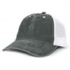 Structured five panel cap which is made from fashionable 100% faded cotton twill with a trucker-style breathable mesh back. It has a curved peak with a matching button, and includes a sweatband and an adjustable Velcro closure that allows one size to fit most people.