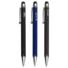 Click action metal pen with unique rubberised finish comes with black ink. Pen features matching stylus tip. Each pen engraves to expose a stunning mirror finish.
