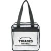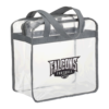 As part of Leed’s Game Day Collection, this clear tote is perfect for fans packing their stadium and event day items safely. Also great for workplace safety. Zippered main compartment. Dual carry handles with 10 inch handle drop height. Note that if the bag is being carried into an NFL stadium, the NFL requires that logo sizes do not exceed 4.5 inch tall by 3.4 inch wide. Capacity of approximately 15L.