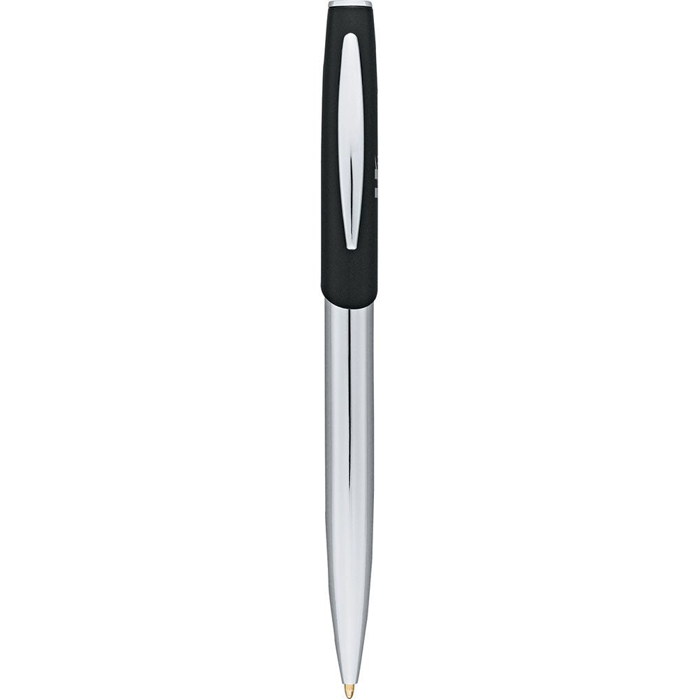 Sophisticated silhouette features matte upper barrel with shiny chrome lower barrel and matching chrome accents. Pen includes premium black ink cartridge.