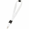 1-inch wide and 20-inch long lanyard includes breakaway neck clip and detachable plastic clip with wide metal swivel hook. Second location setup & run charge waived if both sides decorated with same artwork. Clear PVC Badge Holders available at additional charge. Optional Badge holders not available for imprint. Optional Badge holders packed separately.
