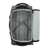 This wheeled duffel features a roomy single compartment design with large U-shaped opening for easy access. Carry using the padded grab handles or the trolley handle. Secure your items with the interior cross straps or in the quick access front and side stash pockets. Made from water resistant fabric and featuring a wipe clean interior, this wheeled duffel makes a great travel companion. Capacity of approximately 52L.