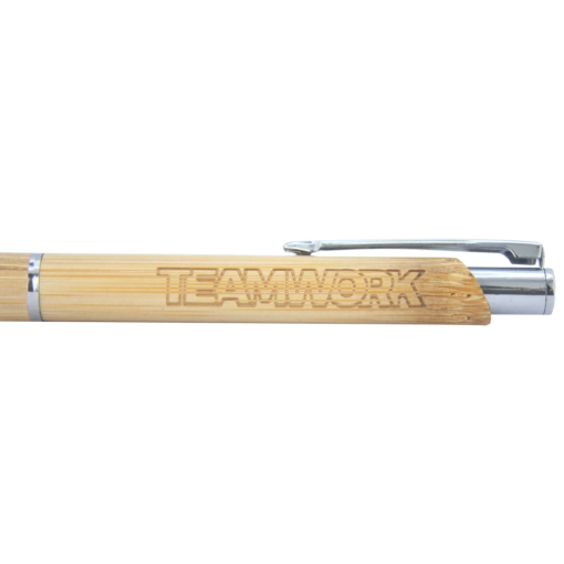 Introducing the Celuk Bamboo Ballpoint Pen: Crafted from eco-friendly bamboo, this stylish pen is ideal for the environmentally conscious. Featuring a sleek design with chrome accents and a smooth black ink refill, it's the perfect work companion.