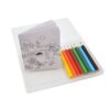 Set of 8 assorted coloured, half size, sharpened pencils in transparent case, with 20 preprinted colouring in sheets (4 designs).