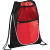 Open main compartment with drawstring rope closure. Open mesh front pocket. Zippered front pocket.