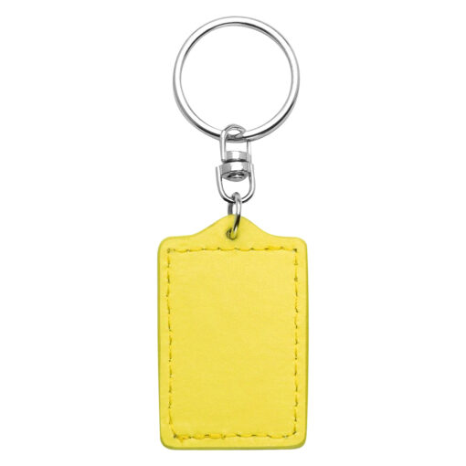 Square shaped yellow coloured split leather with metal keyring. Product Size: 50mm(h) x 35mm(w) x 4mm(d). Available Colours: Yellow. Material: Split leather with metal keychain. MOQ: 250 | Quantity less than MOQ needs to be quoted, Please contact our staff.