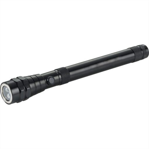 Push button on/off. 3 LED retractable telescopic flashlight with magnet head. 4 button cell batteries included. Product Size: 170mm (L). Available Colours: Black. Material: Aluminum. MOQ: 25 | Quantity less than MOQ needs to be quoted, Please contact our staff.