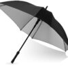 Automatic opening exclusive design black and silver umbrella with fibreglass ribs and shaft, packed in a non woven Marksman gift pouch. Available in 2 colours.
