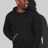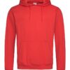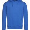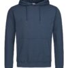 A durable ring-spun cotton-polyester-blend: midweight hooded sweatshirt for men, brushed inside with kangaroo pocket, elastic cuffs and waistband.