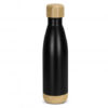 Elegant 500ml stainless steel vacuum bottle with a bamboo lid and base. It has a satin finish and comes in a kraft gift box.