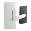 Place the phone holder onto the back of your laptop or monitor to keep your phone insight! The adhesive material keeps the mount secured to your computer. Place the included metal place onto the back of your cell phone or underneath your phone case to create the connection for the magnets. With four built in magnets, it can hold up to 0.6 pounds. The magnets are strong enough to hold the heaviest iPhone, The 12 Pro Max. The slim design, 0.11” thick, of the mobile desktop phone holder allows it to remain on your laptop while your travel to and from the office.