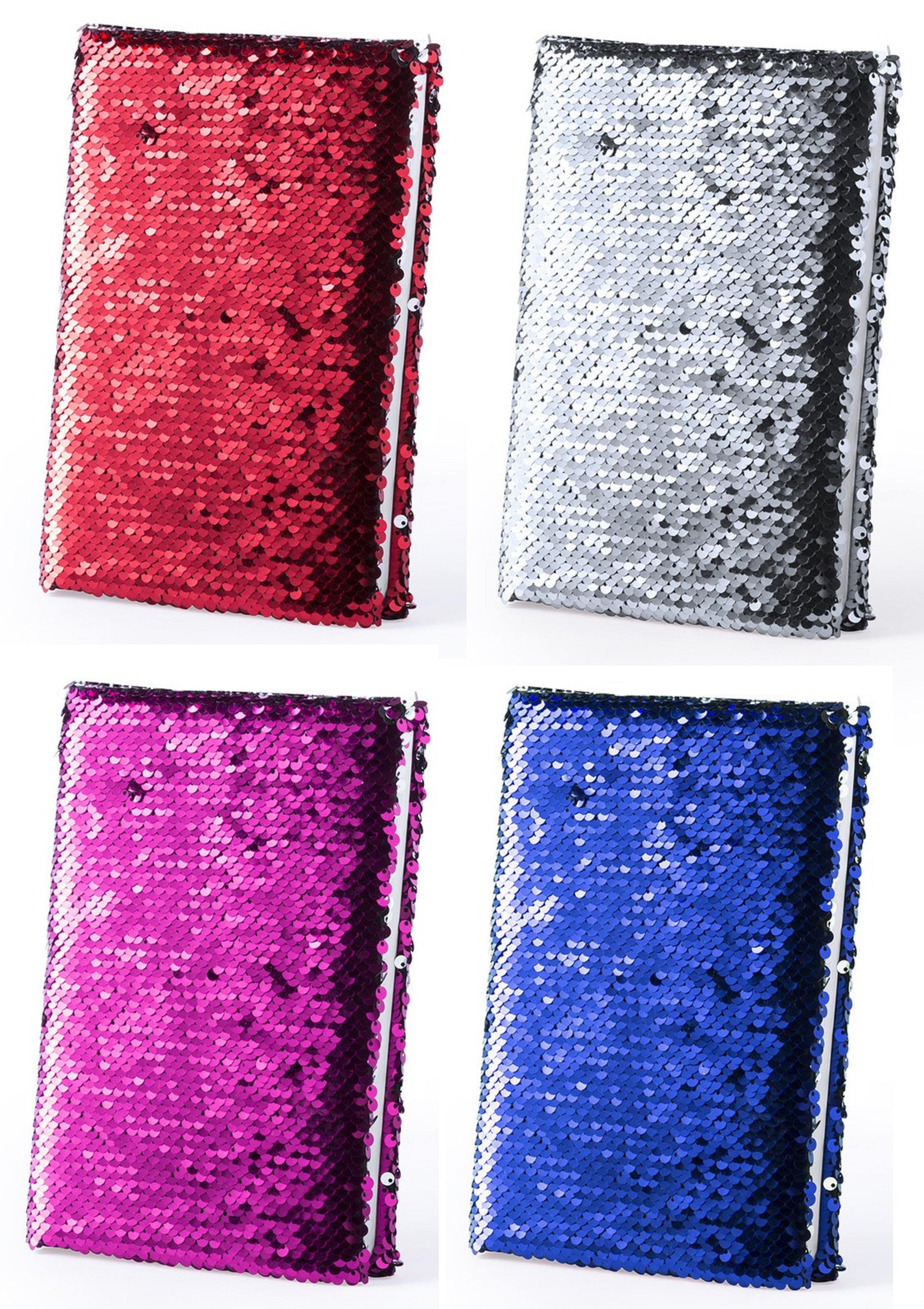 Interactive sequin notepad in eye-catching metallic colours.
