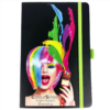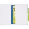 Colour accent painted edge paper, elastic pen loop and ribbon page marker. Back document pocket. Includes 96 sheets of white lined paper. Pen not included.