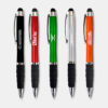 Plastic light up pens in 4 colours with LED light in the barrel and black ink.