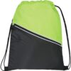 Open main compartment with drawstring rope closure. Zippered front pocket with earbud port. Earbuds not included.