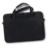 Secure neoprene laptop bag with stowaway carry handles and a removable shoulder strap, meaning the bag can also be used as a laptop carry sleeve. The bag features a plush lining for added cushioning and a pocket divider to accommodate devices of various sizes. Using neoprene in the bag’s construction provides extra protection and water resistance.
