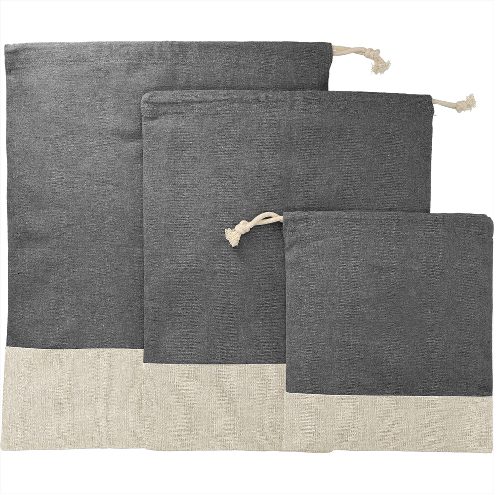 Stay organised on the go with our Split Recycled 3pc Travel Pouch Set made from pre-consumer recycled cotton. Available in black, with varied Personalisation options to add your logo or brand name.