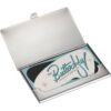 Business card holder with mirror finish. Holds approximately 10 business cards. Engraves tone-on-tone.