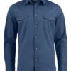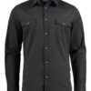 Unisex twill shirt featuring chest pockets with button flaps.