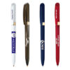 The wide-profile design of this pen allows for a larger imprint area, enhancing the clarity of your branding. Make statement with these classic stationary staples, showcasing a frosted, clear trim. Available with blue or black ink.