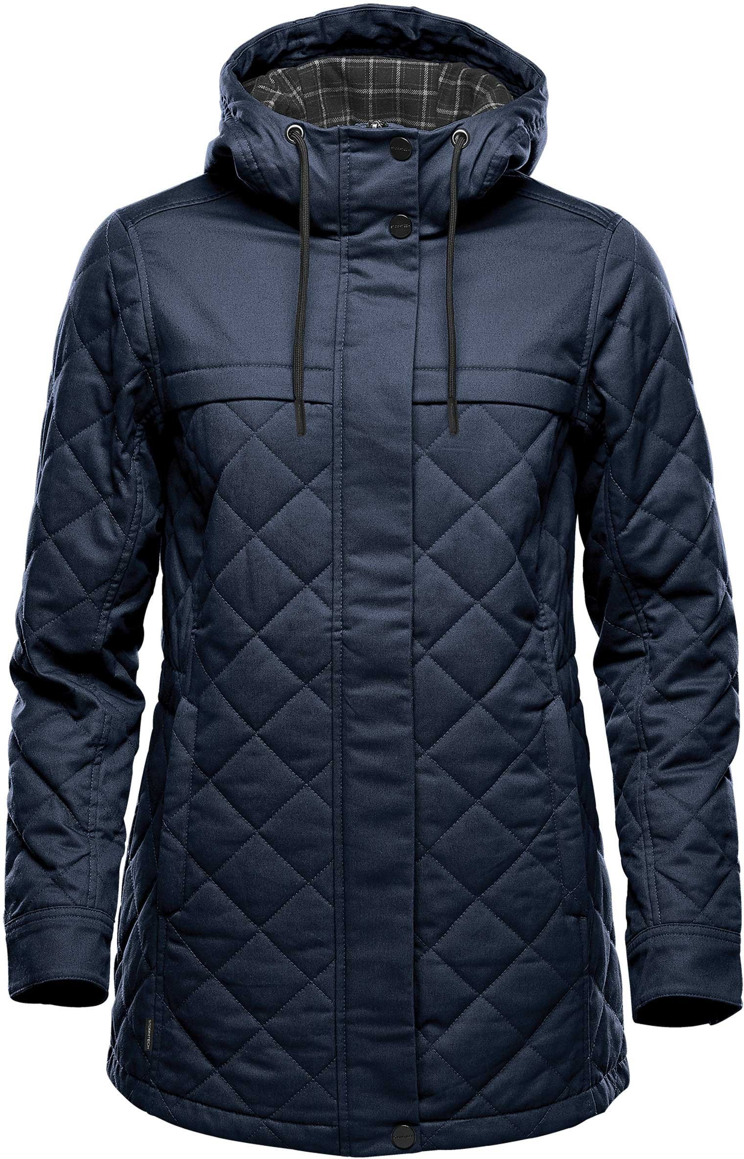 When the temperature unexpectedly dips, this quilted polyfill jacket with a snap closure center front zipper and zippered hand warmer pockets is guaranteed to keep you warm and protected from chills. When the clouds close in, go undercover with the adjustable attached hood and draw the adjustable waist in on the women?s style.
