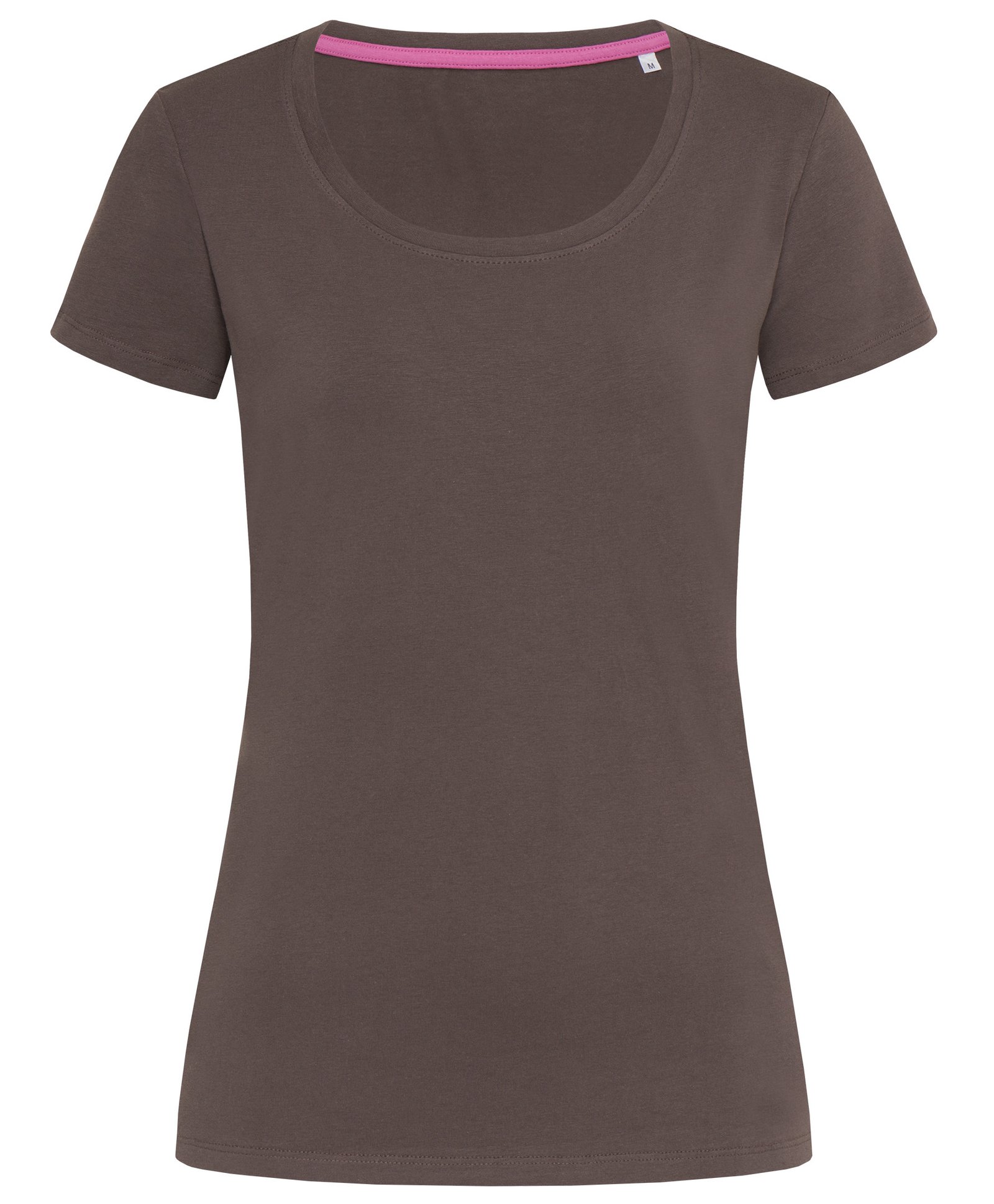 Fitted T-shirt for women, with fashionable length made of soft and sleek cotton-elastane-blend with contrast neck tape.