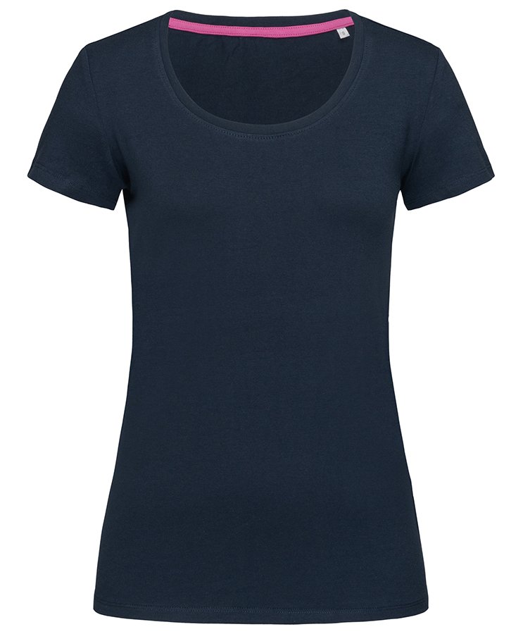 - Single jersey “full feeder”, reinforced shoulder seams, fashionable wide neck drop, slim rib collar, small sleeve hems, contrast neck tape, side seams, small size label in the collar, care label in the side seam.