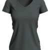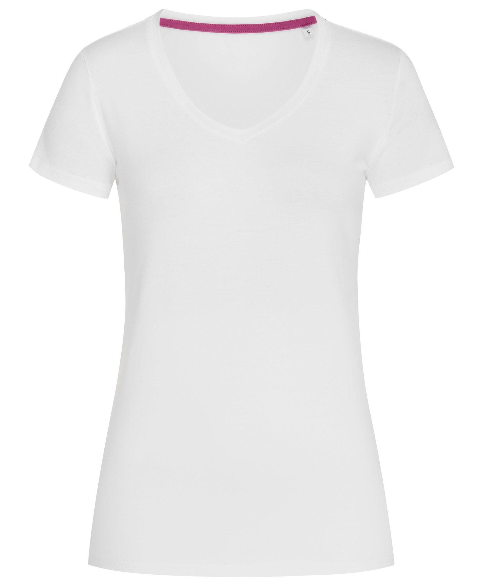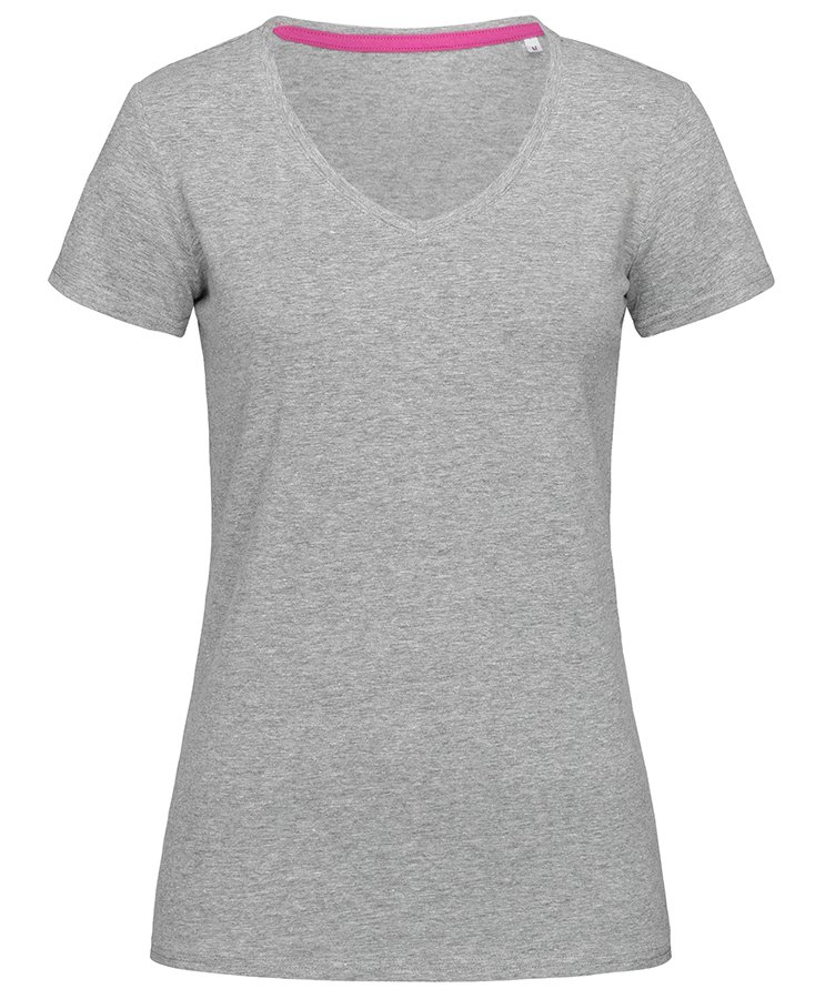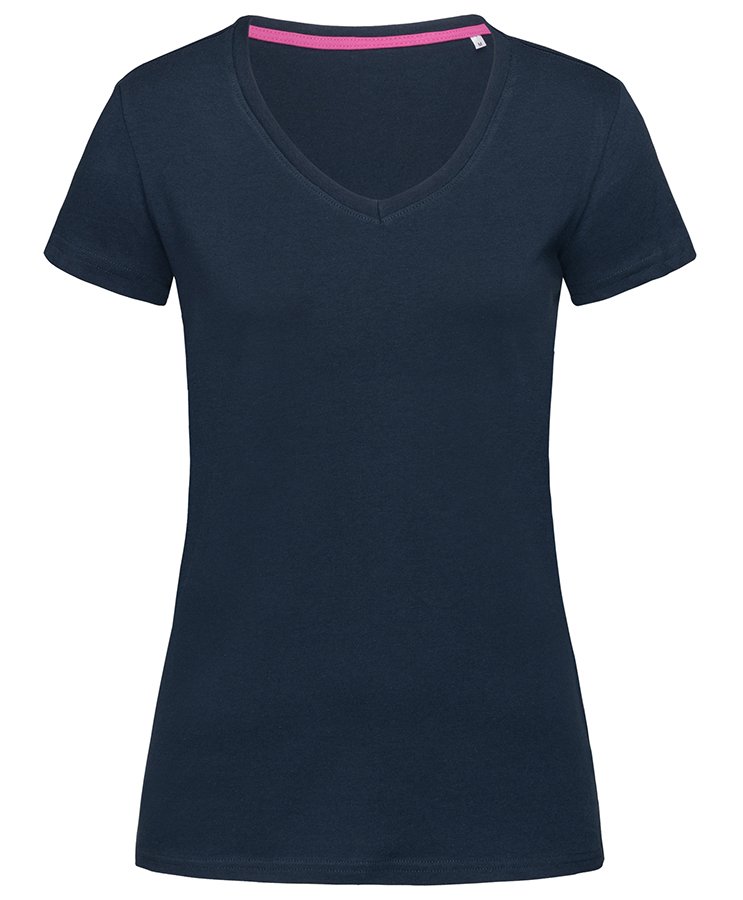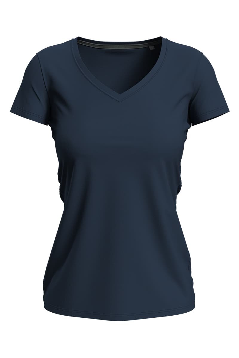 Fitted V-neck T-shirt for women, with fashionable length made of a soft and sleek cotton-elastane-blend with contrast neck tape.
