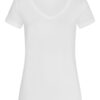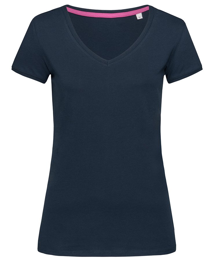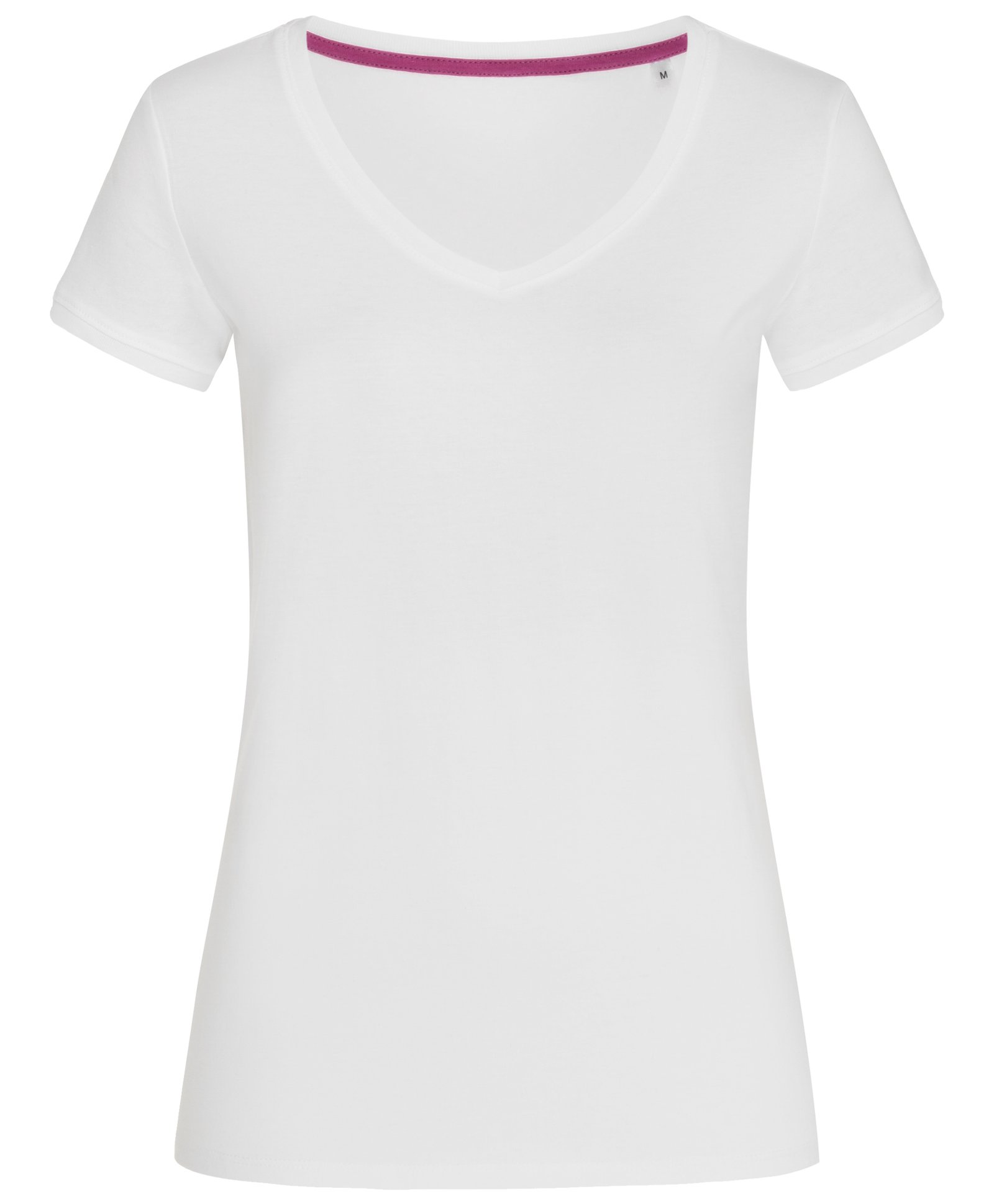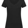 Modern T-shirt for women, with fashionable length and wide V-neck drop made of extra smooth combed ring-spun cotton.