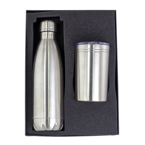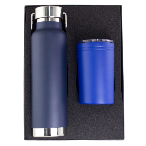 Elevate your gifting with the Thor Sherpa Drink Bottle and Tumbler Gift Set, featuring a 740ml insulated bottle and a 325ml vacuum tumbler, both crafted from high-grade stainless steel. Presented in a sleek black gift box, perfect for corporate branding.