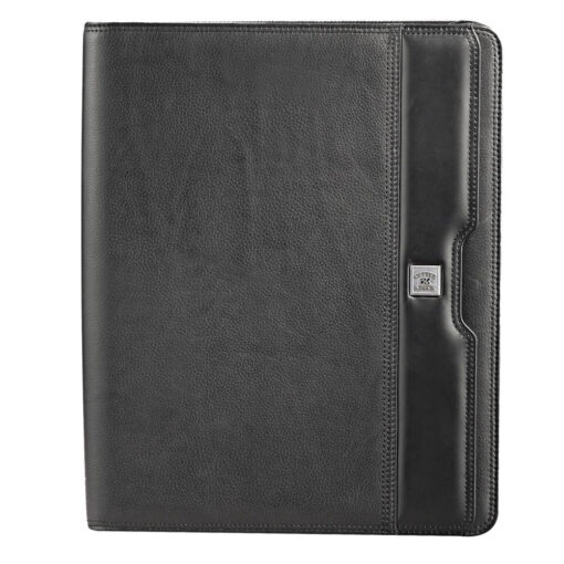 Genuine Nappa leather A4 zippered compendium, open front pocket, organiser includes gusseted file pocket, 3 pen loops, USB flash drive loop, 4 business card holders, PDA & phone holder and organisation pocket. Features: Includes 216mm(w) x 279mm(h) lined writing pad which inserts from the top. Includes Cutter & Buck® metal badge on front. The internal [...]