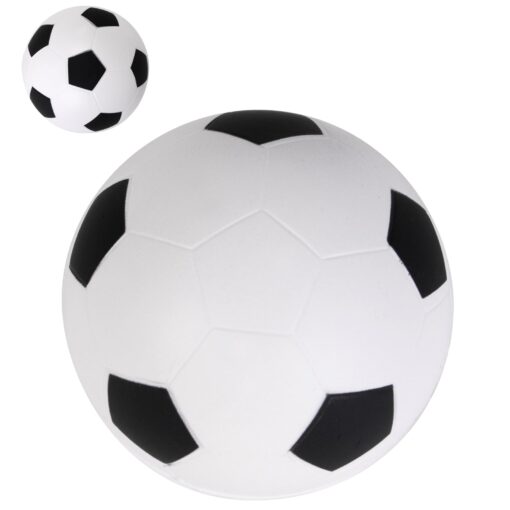 Soccer shaped stress reliever ball. Colours Available: White/Black Material: PU Item Size: 63mm Diameter Available Decoration Methods: Pad Printing Decoration / Print Area: Pad Print (Max 1 colour print): Front – 30mm Diameter, Black panel omitted to maximise print area on white background MOQ: 100