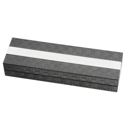 This popular roller ball carbon fibre pen has a delightful woven patterned fabric captured under the glass. With gloss black and silver finish. Supplied with Black ink. Features: Engraves silver. Product Size: 138mm(h) x 13mm Ø. Available Colours: Black. Material: woven patterned fabric captured under the glass shiny silver accents. MOQ: 25 | Quantity less [...]