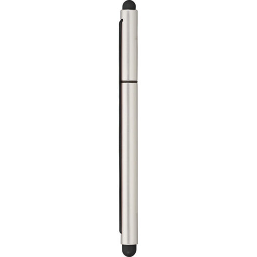 Manufactured with a twist action brass barrel. Supplied with blue ink. Features: Coated with a flat rubberised material then offset with a flat chrome clip. Engraves silver. Product Size: 145mm(h) x 13mm Ø. Available Colours: Silver. Material: Satin chrome with shiny chrome accents. MOQ: 25 | Quantity less than MOQ needs to be quoted, Please [...]