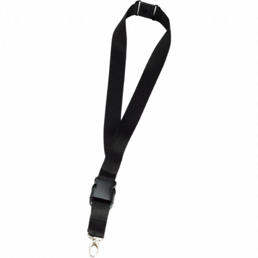 1-inch wide and 22-inch long lanyard includes breakaway neck clip and detachable plastic clip with wide metal swivel hook. Product Size: 447mm (H) x 25mm (W). Available Colours: Black. Material: Polyester. MOQ: 50 | Quantity less than MOQ needs to be quoted, Please contact our staff.
