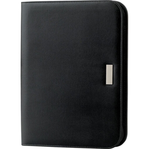 Zippered cover. Includes refillable 30 ruled page notepad. Front open document pocket. Interior expanding pocket, document pocket, zippered pocket and pen loop. Pen not included. Features: Check out our Tablet Compatibility chart to see which tablets fit in the product. Product Size: 343mm(h) x 254mm(w) x 30mm(d). Available Colours: Black. Material: UltraHyde. MOQ: 25 | [...]