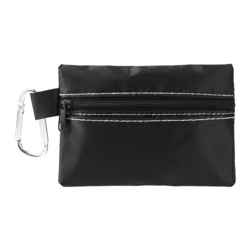 Zippered pouch with silver mini carabiner. Contains 3 antiseptic cleaning wipes, 5 standard size adhesive bandages, 6 small adhesive bandages, 1 adhesive butterfly bandage, 1 adhesive knuckle bandage, 2 alcohol wipes and 2 sting-relief wipes. Product Size: 83mm (H) x 114mm (W). Available Colours: Black,Graphite,Orange,Red,Royal Blue. Material: 420d Polyester pouch. MOQ: 50 | Quantity less [...]