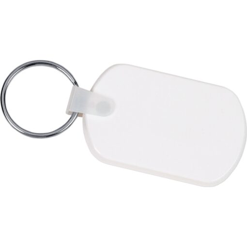 Rectangular soft key tag is thick and pliable. Includes metal split key ring. Product Size: 56mm (H) x 35mm (W) x 4.7mm (D). Available Colours: White. Material: PVC. MOQ: 50 | Quantity less than MOQ needs to be quoted, Please contact our staff.